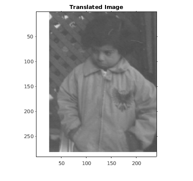 переводит отображают B = imtranslate(A,translation)A вектором сдвига, заданным в translation. Если A имеет больше чем две размерности и translation двухэлементный вектор, imtranslate применяет 2D перевод в A, одна плоскость за один раз.