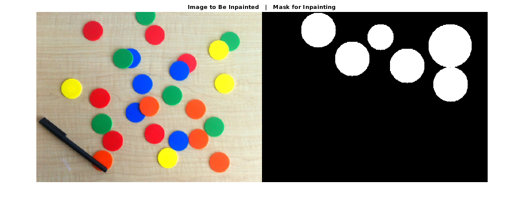 Каждый ROI в бинарном рисунке маски должен быть достаточно большим, чтобы заключить соответствующую область в изображение, чтобы быть inpainted.