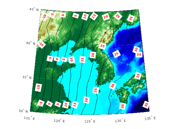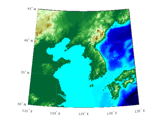 geoshow(korea5c,korea5cR,'DisplayType','texturemap')
