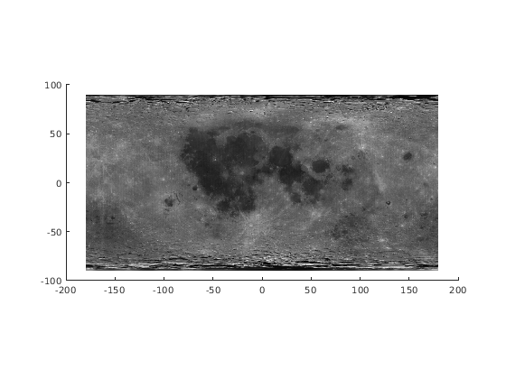 geoshow( проекты и отображения определенное геолокацию изображение как текстурная карта на поверхности нулевого вертикального изменения. Определенное геолокацию изображение lat,lon,X,cmap)I может быть истинный цвет, шкала полутонов или двухуровневое изображение. X индексируемое изображение с палитрой cmap. Примеры определенных геолокацию изображений включают цветной составной объект от спутникового swath или изображения, на которое первоначально ссылаются к различной системе координат.