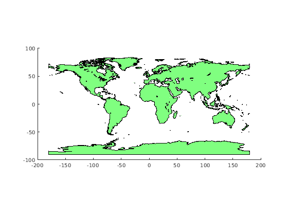 По умолчанию, geoshow отображения lat и lon как линии. Можно опционально отобразить векторные данные как точки, мультиточки или многоугольники при помощи DisplayType аргумент пары "имя-значение".