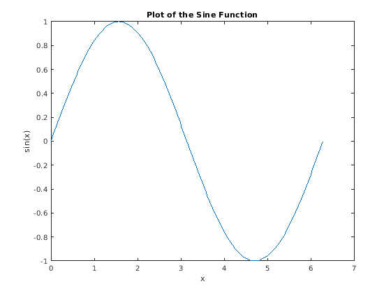 xlabel('x') ylabel('sin(x)') title('Plot of the Sine Function')