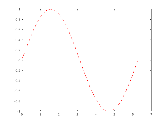 x = 0:pi/100:2*pi; y = sin(x); plot(x,y)