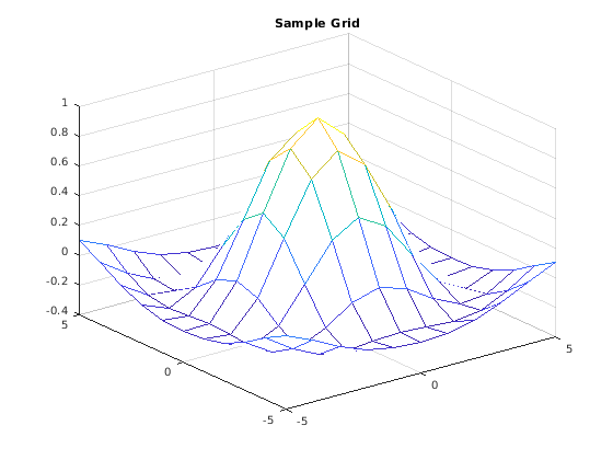 В этом примере показано, как создать 2D сетку с помощью meshgrid и ndgrid.