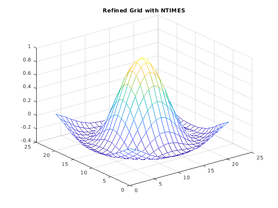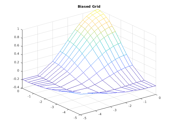 Сетка, интервал которой варьируется в любой размерности, является сеткой nonuniform. Например, [X1, X2] = ndgrid([1 5 6 9],[11 13 15]) создает нерегулярную координатную сетку, потому что интервал варьируется по первому измерению.
