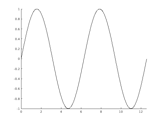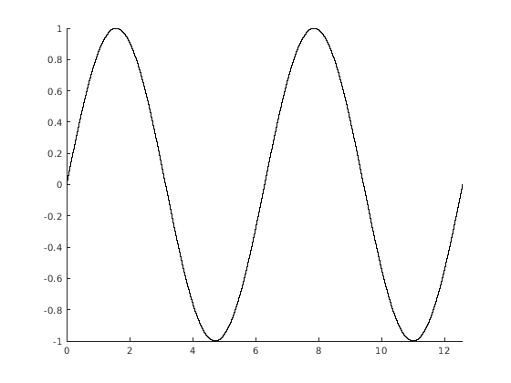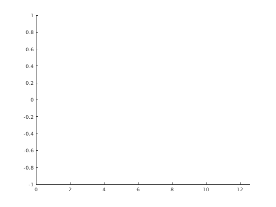 h = animatedline; axis([0,4*pi,-1,1]) numpoints = 100000; x = linspace(0,4*pi,numpoints); y = sin(x); for k = 1:numpoints addpoints(h,x(k),y(k)) drawnow limitrate end