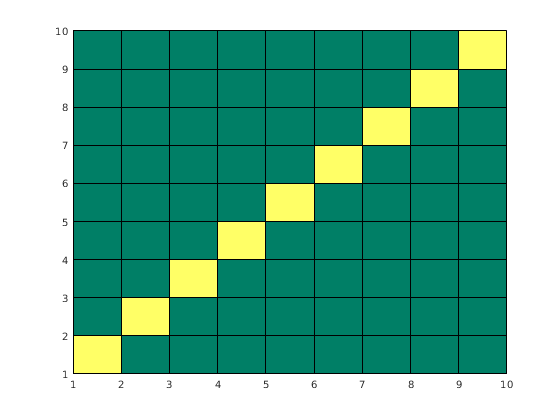 Во-первых, создайте график с помощью summer палитра. По умолчанию x значения увеличиваются слева направо, и y значения увеличиваются от нижней части до верхней части.
