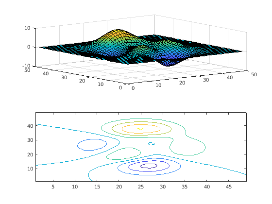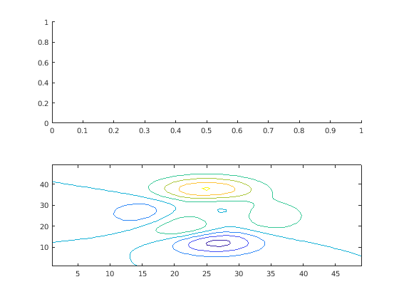 Начиная в R2019b, можно отобразить мозаичное размещение графиков с помощью tiledlayout и nexttile функции. Вызовите tiledlayout функция, чтобы создать 2 1 мозаичное размещение графика. Вызовите nexttile функция, чтобы создать объекты осей ax1 и ax2. Добавьте графики в обе оси.