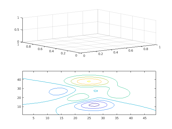 Очистите объемную поверхностную диаграмму от верхних осей путем определения ax1 как входной параметр к cla.