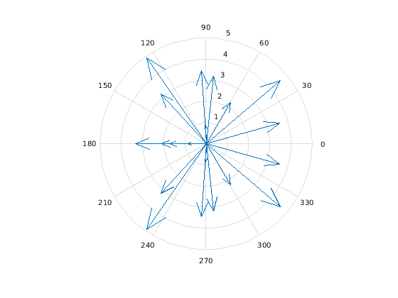 compass(Z) отображает график компаса, имеющий n стрелы, где n является числом элементов в Z. Местоположение основы каждой стрелы является источником. Местоположение совета каждой стрелы относительно основы, как определено действительными и мнимыми компонентами Z. Этот синтаксис эквивалентен compass(real(Z),imag(Z)).