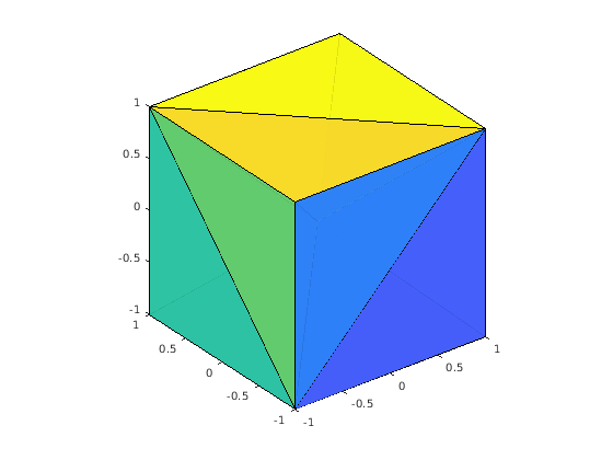Можно использовать tetramesh визуализировать четырехгранники, которые формируют соответствующий симплекс. camorbit вращает положение камеры, чтобы обеспечить значимое представление фигуры.