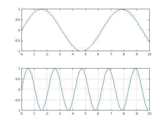 grid on отображает главные линии сетки для текущей системы координат или графика, возвращенного gca команда. Главные линии сетки расширяют от каждой отметки деления.