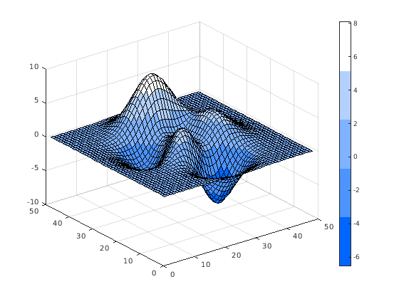 rgb = hsv2rgb(hsv); surf(peaks); colormap(rgb); colorbar