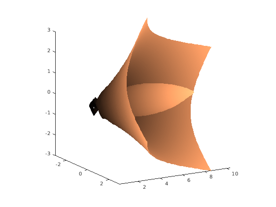 [x,y,z,v] = flow; [faces,verts,colors] = isosurface(x,y,z,v,-3,x); patch('Vertices',verts,'Faces',faces,'FaceVertexCData',colors,... 'FaceColor','interp','EdgeColor','interp') view(30,-15) axis vis3d colormap copper
