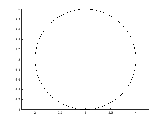 Нарисуйте круг путем установки Curvature свойство к [1 1]. Нарисуйте круг так, чтобы он заполнил прямоугольную область между точками (2,4) и (4,6). Position свойство задает наименьший прямоугольник, который содержит круг.