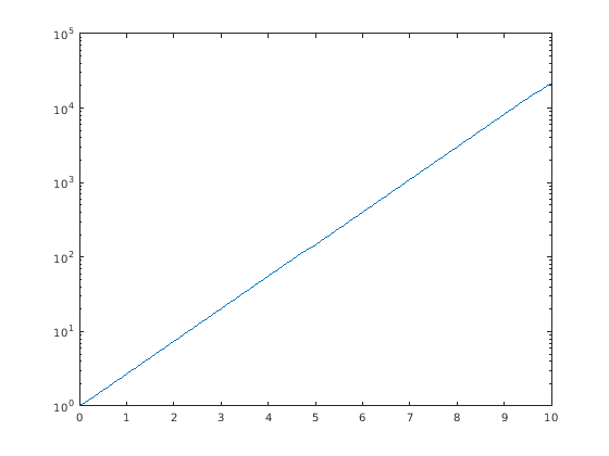 semilogy(Y) создает график с помощью основы 10 логарифмических масштабов в оси Y и линейная шкала для оси X. Это строит столбцы Y по сравнению с их индексом. Если Y содержит комплексные числа, затем semilogy(Y) эквивалентно semilogy(real(Y),imag(Y)). semilogy функция игнорирует мнимый компонент во всем другом использовании этой функции.