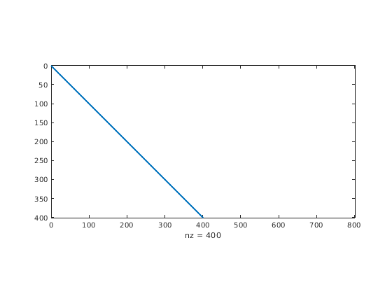 Создайте 400 800 разреженную единичную матрицу и просмотрите шаблон ненулей.