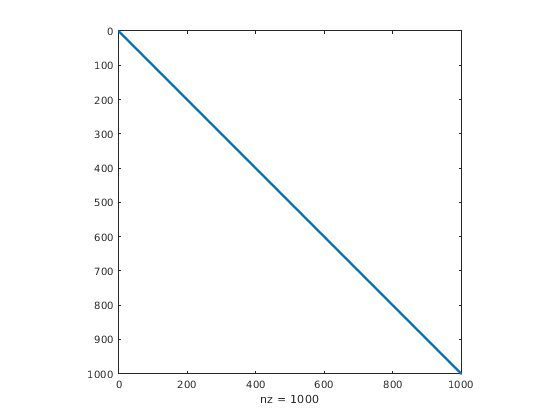 Результат совпадает с sparse(eye(1000)), но эта последняя версия требует временного хранения для полного представления, прежде чем это будет преобразовано в разреженное устройство хранения данных.