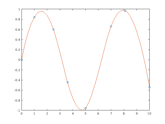 x = [0 1 2.5 3.6 5 7 8.1 10];