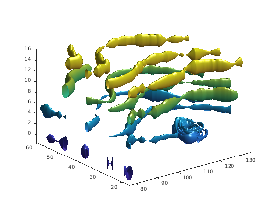 streamtube(vertices,X,Y,Z,divergence) принимает предварительно вычисленные оптимальные вершины и расхождение. vertices массив ячеек оптимальных вершин (как произведено stream3XYZ, и divergence трехмерные массивы.
