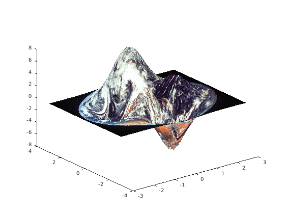 surface(pX,pY,pZ,X,'FaceColor','texturemap', ... 'EdgeColor','none','CDataMapping','direct') colormap(map) view(3)