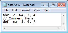 Загрузите файл data.csv и предварительный просмотр его содержимое в текстовом редакторе. Снимок экрана показывают ниже. Заметьте, что файл содержит данные, разделенные запятыми, и также содержит пустые значения.