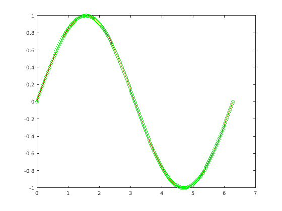 h = redplot(x,y,'Marker','o','MarkerEdgeColor','green');