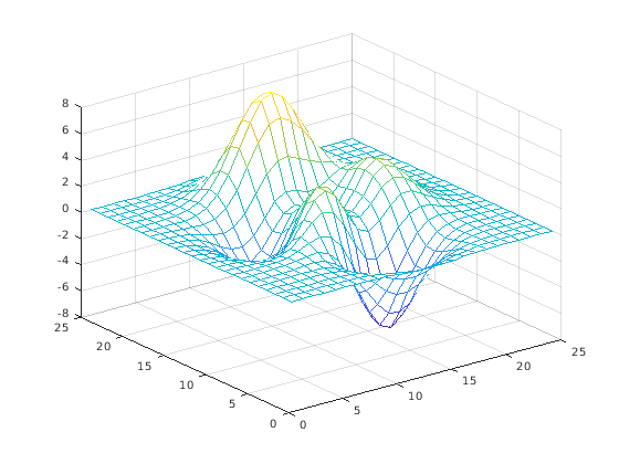 z = peaks(25); figure mesh(z)
