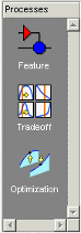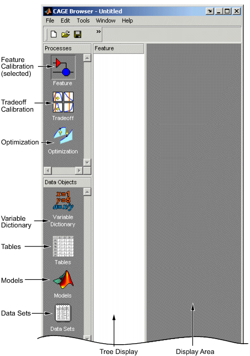CAGE включает панель Processes и панель Data Objects, чтобы помочь вам идентифицировать тип калибровки, которую вы хотите сделать и объекты данных, которые вы намереваетесь использовать. Используйте кнопки в этих панелях, чтобы перейти между различными разделами функциональности в CAGE.
