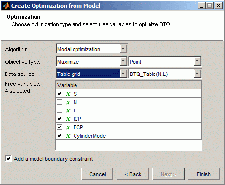 Выберите Tools> Create Optimization From Model (или используйте кнопку на панели инструментов).