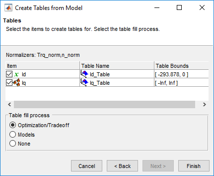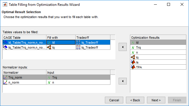 Используйте Таблицу, Заполняющую от Мастера Результатов оптимизации, чтобы заполнить Id_Table и Iq_Table таблицы.
