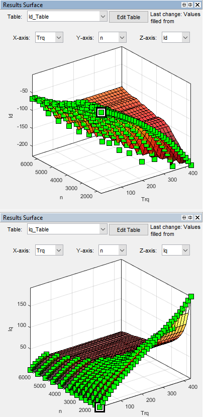 Калибровочные таблицы являются d-и q-токами ссылки оси как функции моторного крутящего момента и частоты вращения двигателя.