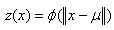 является n-мерным вектором, названным центром радиальной основной функции, ||. || обозначает Евклидово расстояние и одномерная функция, заданная для положительных входных значений, которые мы назовем функцией профиля.