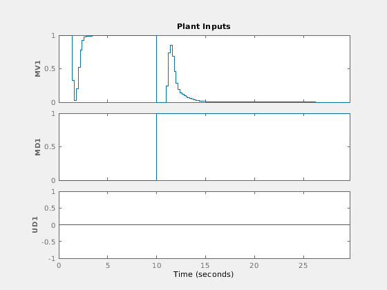 Используйте sim симулировать неявный (традиционный) или явный контроллер MPC в замкнутом цикле с линейной независимой от времени моделью, которая, по умолчанию, является моделью объекта управления, содержавшейся в MPCobj.Model.Plant. Как альтернатива, sim может симулировать поведение разомкнутого цикла модели объекта или поведение с обратной связью в присутствии несоответствия модели, когда модель прогноза диспетчера отличается от фактической модели объекта управления.