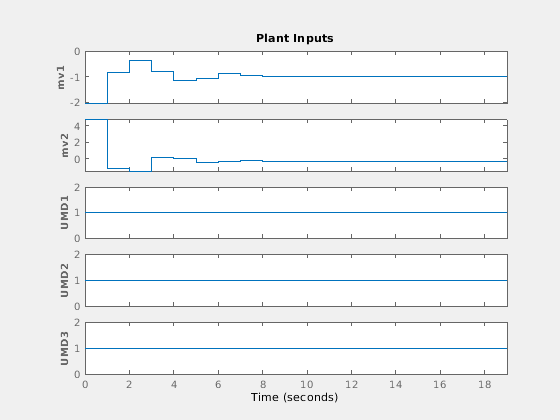 options = mpcsimopt(mpcobj); options.UnmeasuredDisturbance = dist; options.Model = plantActual;