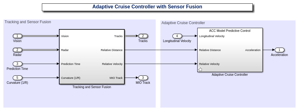 ACC с Fusion Датчика, который моделирует сплав датчика и управляет продольным ускорением транспортного средства. Этот компонент позволяет вам выбирать или классическую или прогнозирующую версию управления модели проекта.