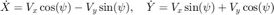 ) основаны на зафиксированных координатах тела. Чтобы получить траекторию, пересеченную транспортным средством, зафиксированные координаты тела преобразованы в глобальные координаты через следующие отношения:
