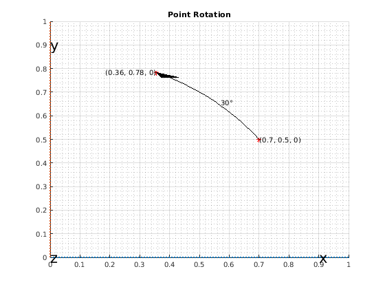 Чтобы найти местоположение вращаемой точки, право - умножает rotmatPoint транспонированным массивом pt.
