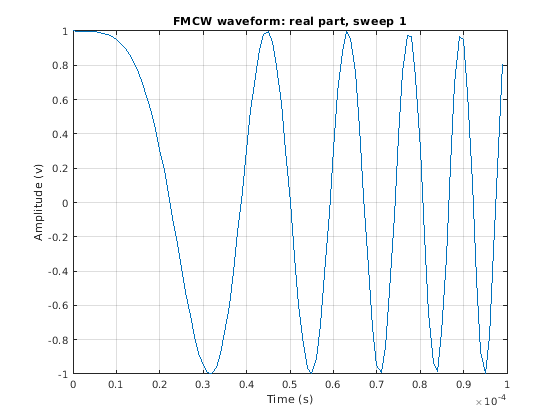 FMCWWaveform объект создает FMCW (частота модулировала непрерывную волну), форма волны.