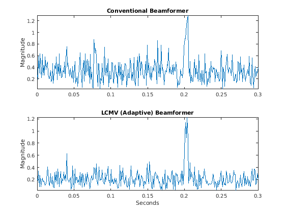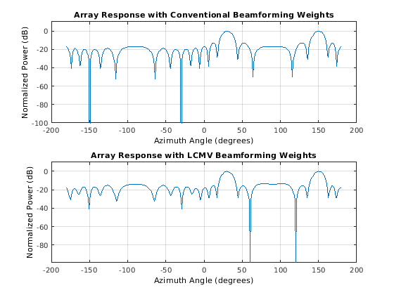 Поэтапное. Объект LCMVBeamformer реализует узкополосный формирователь луча минимального отклонения линейного ограничения (LCMV) для сенсорной матрицы. Формирователь луча LCMV принадлежит семейству ограниченных формирователей луча оптимизации.
