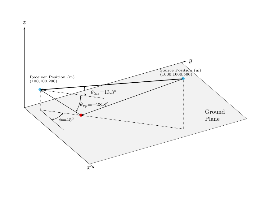Функциональный rangeangle определяет длину пути распространения и направление контура сигнала от исходной точки, или набор источника указывает на контрольную точку. Функция поддерживает две модели распространения – модель свободного пространства и модель 2D луча. Модель свободного пространства является одним путем угла обзора от исходной точки до контрольной точки. 2D луч многопутевая модель генерирует два пути. Первый путь следует за путем свободного пространства. Второй путь является отраженным путем от граничной плоскости в z = 0. Направления контура заданы или относительно глобальной системы координат в контрольной точке или относительно системы локальной координаты в контрольной точке. Расстояния и углы в контрольной точке не зависят, на которое направление сигнал перемещается вдоль пути.