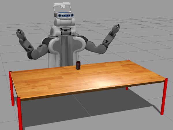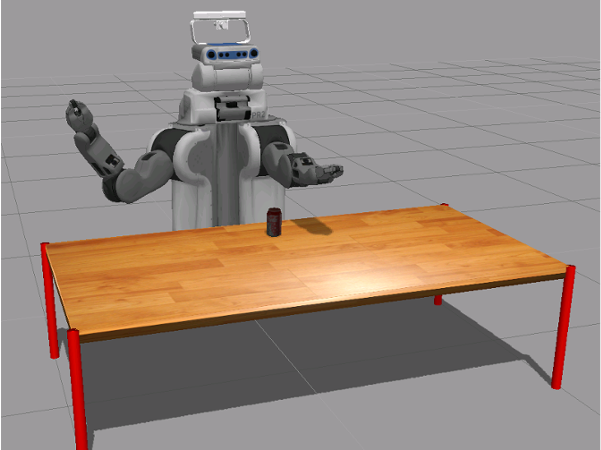 Породите PR2 в простой среде (только с таблицей, и кокс может) в Средстве моделирования Gazebo. Выполните шаги в Запуске с Gazebo и Симулированным TurtleBot (ROS Toolbox), чтобы запустить Gazebo PR2 Simulator с рабочего стола виртуальной машины Ubuntu®.