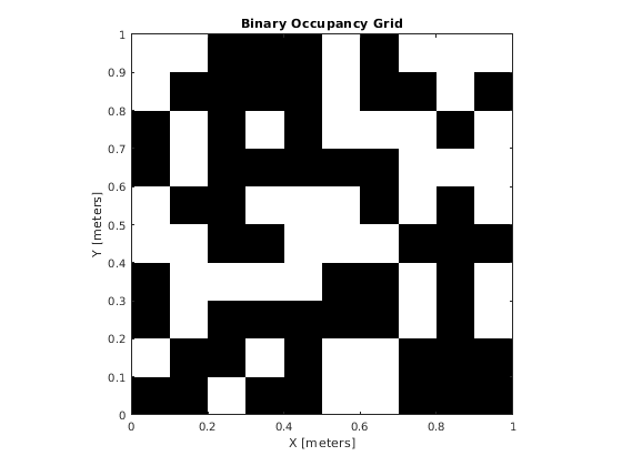 Бинарная сетка заполнения, возвращенная как binaryOccupancyMap указатель на объект. map преобразован от 'nav_msgs/OccupancyGrid' обменивайтесь сообщениями в сети ROS. Это - объект с сеткой двоичных значений, где 1 указывает на занятое местоположение и 0 признаки незанятое местоположение.