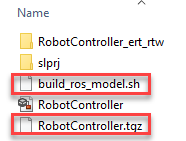 Сгенерированный архив Кода С++: Неважно, что действие Сборки вы выбираете (Ни один, Сборка и загрузка, Сборка и запуск), Simulink всегда генерирует два файла в вашей текущей папке: архив, содержащий исходный код C++ (RobotController.tgz в нашем примере) и сценарий оболочки для извлечения и создания Кода С++ вручную (build_ros_model.sh). Если ваш компьютер MATLAB не соединяется с устройством ROS, можно передать файлы вручную и создать их там.