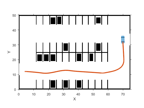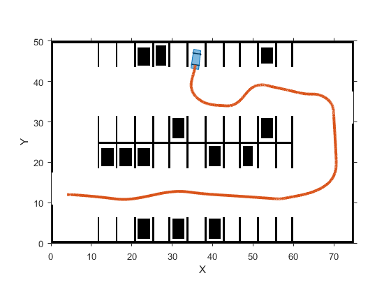 while ~reachedDestination(valet.behavioralPlanner) pause(1); end % Show the vehicle simulation figure. showFigure(valet.vehicleSim);