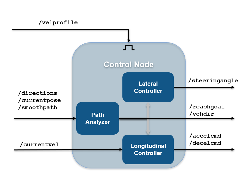 Узел Управления ответственен за продольные и боковые контроллеры. Этот узел публикует эти темы: