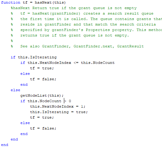 Эти методы предназначаются, чтобы позволить клиенту вашего средства поиска использовать while MATLAB цикл, чтобы искать контейнер вашего средства поиска, например,