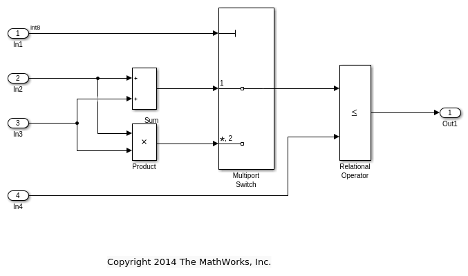 Корень импортирует In2, In3, и In4 задайте Inherit: Auto для параметров блоков Типа данных. Нисходящие блоки также используют наследованные типы данных.