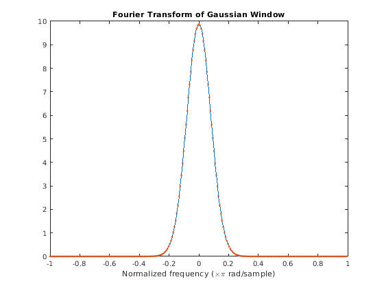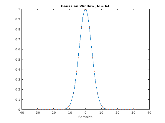 где – (L – 1)/2 ≤ n ≤ (L – 1)/2, и α обратно пропорционально стандартному отклонению, σ, Гауссовой случайной переменной. Точным соответствием со стандартным отклонением Гауссовой функции плотности вероятности является σ = (L – 1) / (2α).