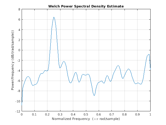 pwelch(___) без выходных аргументов строит валлийскую оценку PSD в окне текущей фигуры.